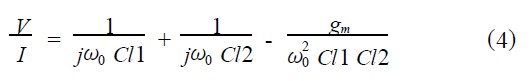 如果要維持電路振蕩,必須保持Zc 的實部與R1 之和是零或者負值,這就對gm 的值提出了要求。