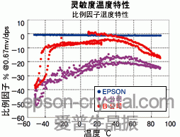 Epson的角速度傳感器由于使用了水晶為原料,所以即使周圍溫度發生變化,靈敏度·零點輸出也能保持穩定。