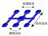 通過加入旋轉運動,由于地球偏轉力(克里奧利力),驅動臂會產生縱向振動。由于驅動臂的縱向振動,中央固定部彎曲,檢測臂產生檢測振動。