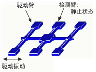 驅動臂通過相對振動,互相消除彼此的振動,所以中央的檢測臂處于靜止狀態。檢測臂處于靜止狀態,因此可以正確地測試出處于沒有旋轉運動的狀態。