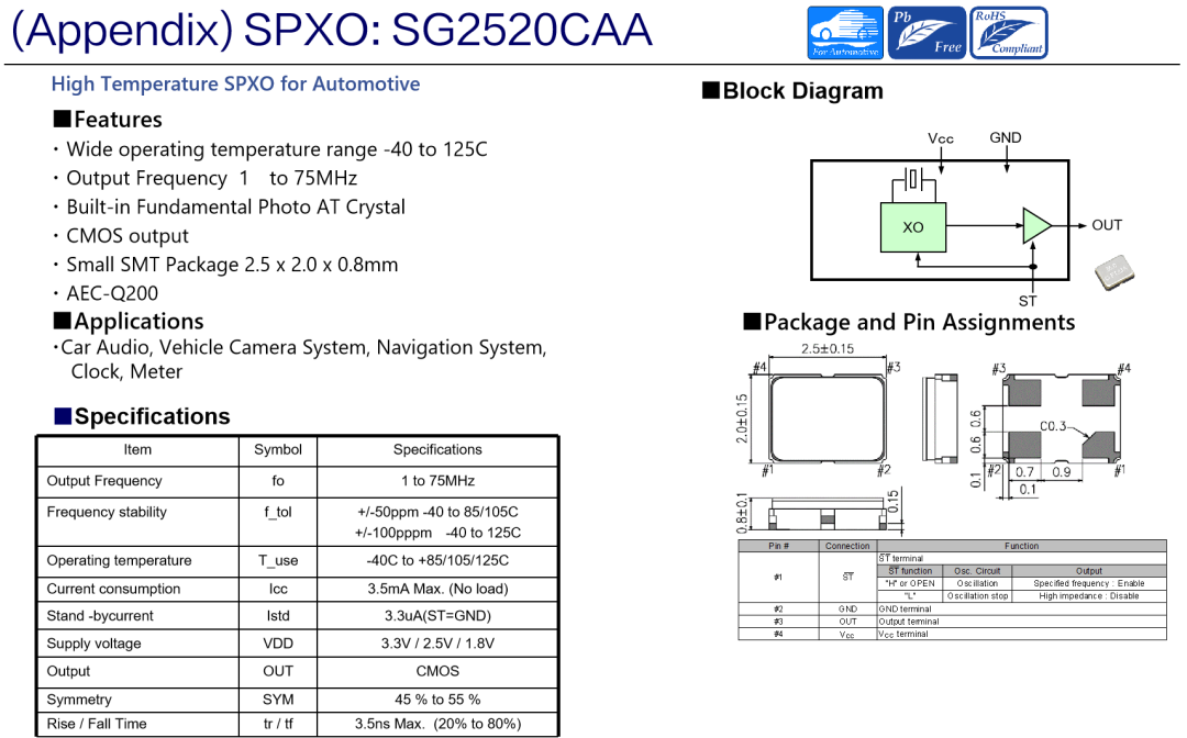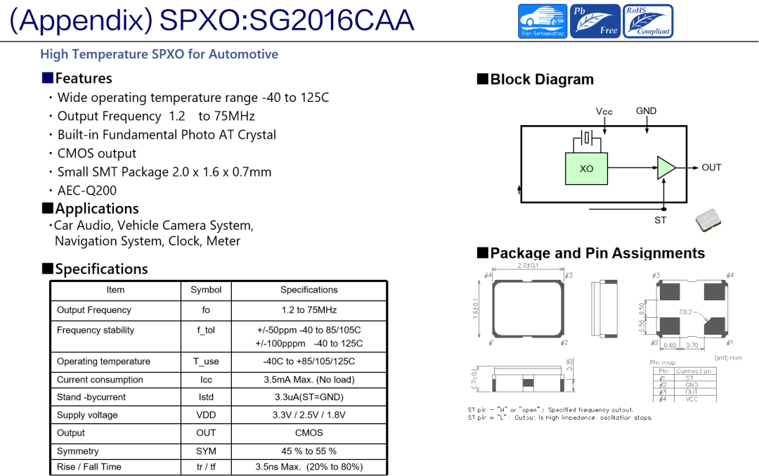 對于芯片的穩定工作,高性能的晶體晶振必不可少。愛普生的晶體晶振有著高可靠性,低功耗,小封裝的特點,并且通過AEC-Q200認證,讓行駛更放心。推薦SG2016CAA,SG2520CAA可編程有源晶振配合HUD芯片使用。
